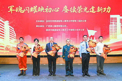 自治區(qū)黨委退役軍人事務工作領導小組辦公室副主任、自治區(qū)退役軍人事務廳副廳長王幼林,集團公司黨委副書記、紀委書記、工會主席賴頌平,柳州市人民政府二級巡視員袁燕珍等領導出席活動。