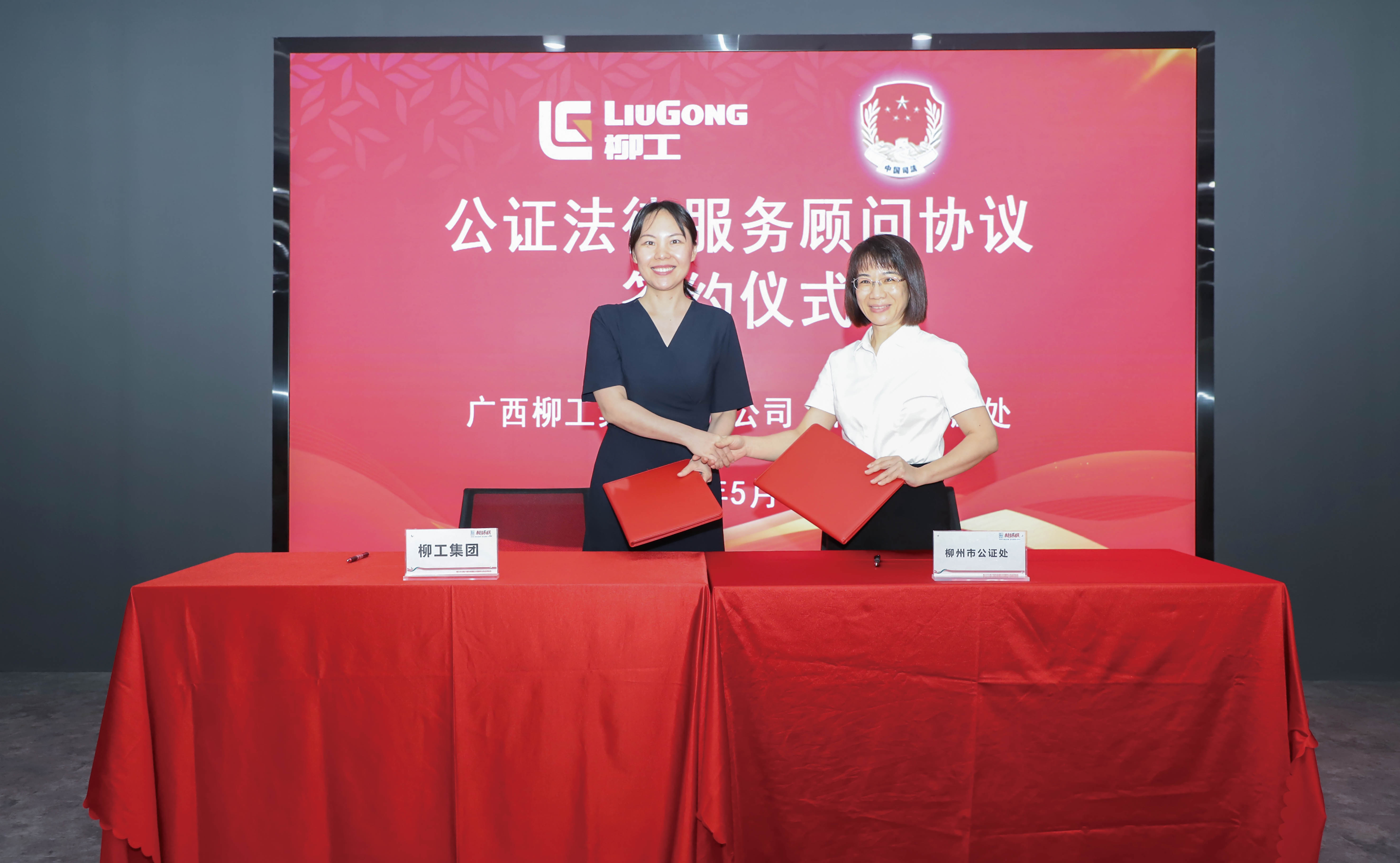 座談會(huì)后,廣西柳工集團(tuán)有限公司法務(wù)總監(jiān)韋江溢、市公證處主任鐘百雨分別代表柳工集團(tuán)、市公證處共同簽署了公證法律服務(wù)顧問(wèn)協(xié)議。
