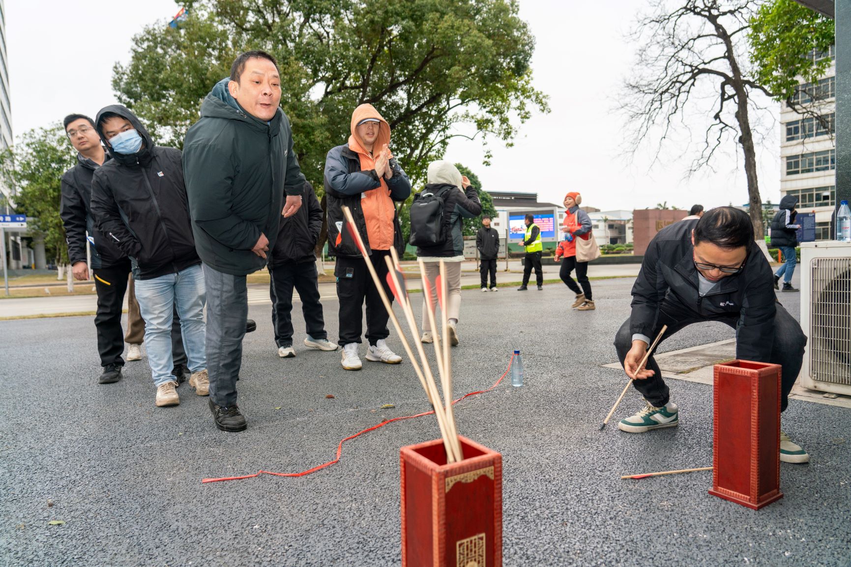 “哎呀,又沒投進(jìn)!”一位職工笑著說道,挑戰(zhàn)飛箭投壺項(xiàng)目難度最大,5投0中是常事。但架不住職工們“又菜又愛玩”,各個(gè)摩拳擦掌、不斷嘗試,不管是否投中都能贏得圍觀群眾的陣陣喝彩助威。“我教你們,不如5支一起投,命中率還高!”有職工出謀劃策,沒想到命中率真的有所提升,仿佛找到了竅門,引得大家紛紛效仿,不時(shí)傳來驚喜歡呼。