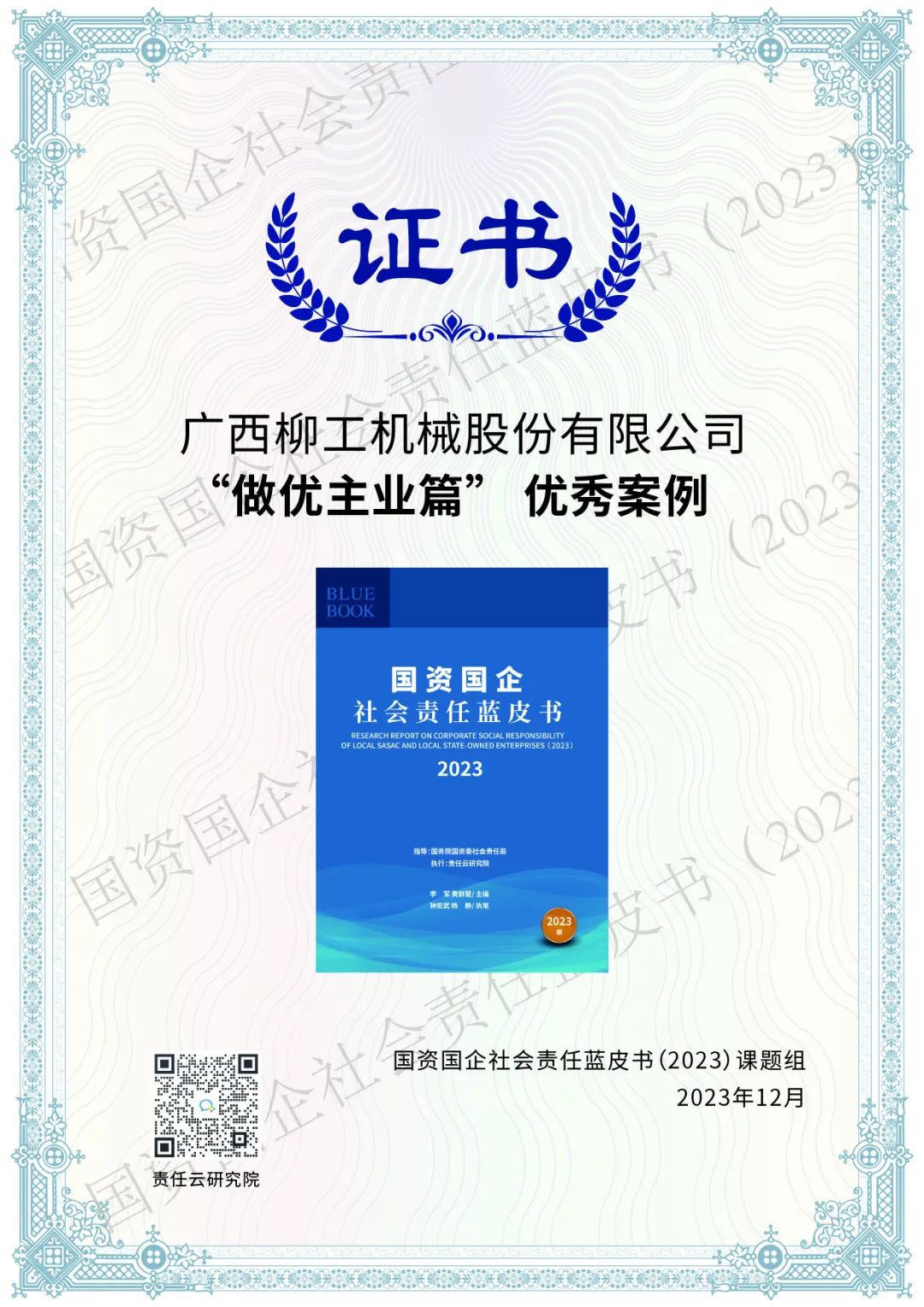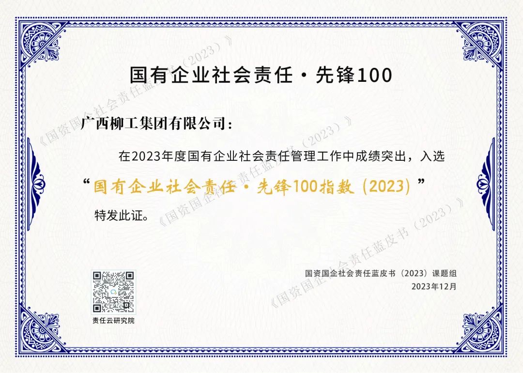 近日,由國務(wù)院國資委社會責(zé)任局主辦的“中央企業(yè)和地方國資國企社會責(zé)任系列藍(lán)皮書集中發(fā)布活動”在北京召開,會上正式發(fā)布《國資國企社會責(zé)任藍(lán)皮書(2023)》(以下簡稱《藍(lán)皮書》),并公布“國有企業(yè)社會責(zé)任·先鋒100指數(shù)”榜單,柳工集團榮登榜單,是廣西唯一一家入選該榜單的企業(yè)。