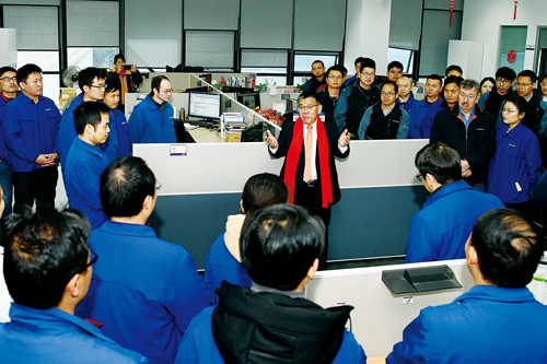 在全球研發(fā)中心,曾光安分別看望慰問了研究總院、裝載機(jī)研究院、挖掘機(jī)研究院、傳動(dòng)件研究所等院所的工程技術(shù)人員,向大家致以新年的祝福問候。他感謝過去一年公司全體研發(fā)技術(shù)人員為公司發(fā)展做出的不懈努力。他強(qiáng)調(diào),搞產(chǎn)品開發(fā)一定要有創(chuàng)新力,要有自己的核心競(jìng)爭(zhēng)力技術(shù),要摒棄模仿別人產(chǎn)品的“跟班”做法。他希望2019年,裝載機(jī)研究院和挖掘機(jī)研究所在產(chǎn)品開發(fā)領(lǐng)域取得新碩果。