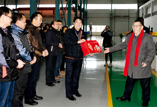 曾光安向農(nóng)機(jī)公司送上新春慰問品