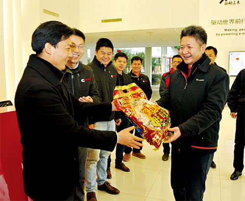 裝載機(jī)公司的員工們準(zhǔn)時(shí)回到工作崗位,抖擻精神,開啟新一年的征程。公司黨委書記、董事長(zhǎng)曾光安等領(lǐng)導(dǎo)為到崗的員工送上了新春祝福。員工們臉上洋溢著濃濃的春意,嘴角掛著幸福的微笑,從公司領(lǐng)導(dǎo)手中接過新春慰問品的同時(shí),也接收了新的指令。