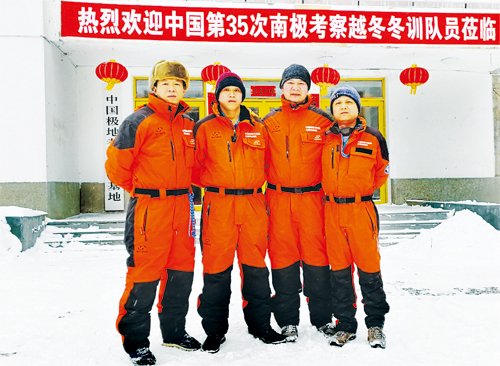 陳波(左一)、韋勇豪(左二)、宋世杰(右一)參加越冬訓(xùn)練時(shí)留影