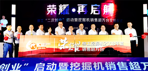 柳工挖掘機年度產(chǎn)銷突破10000臺 柳工“二次創(chuàng)業(yè)”啟動暨挖掘機銷售萬臺交機儀式舉行