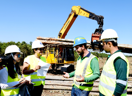 8月18日一早,我們?cè)诹ぐ臀鞴S制造總監(jiān)黨建元和柳工拉美公司市場(chǎng)專員Camila的陪同下,深入莫吉瓜蘇和卡薩布蘭卡的林場(chǎng),探訪我們的設(shè)備作業(yè)情況。在此之前我們一直很期待,畢竟這樣的工況在國(guó)內(nèi)并不常見。