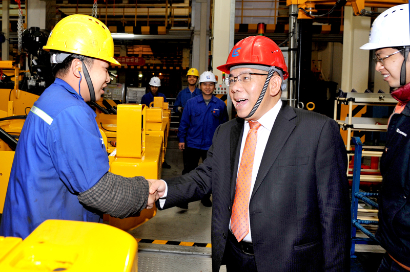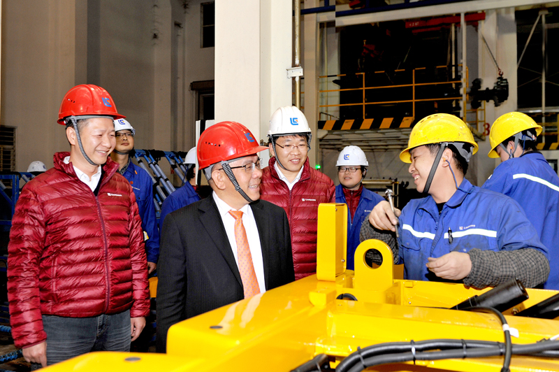 在剛下線的CLG8128H大型裝載機一側(cè),曾光安與列隊慶祝勝利的裝配線員工一一握手,他感謝大家為勝利奪取“1899戰(zhàn)役”付出的辛勤工作。曾光安在講話中高度贊揚柳工人是英勇頑強、堅不可摧的鋼鐵戰(zhàn)士。他說,“1899戰(zhàn)役”只是個熱身,2018年我們會迎來更大的挑戰(zhàn)。他對裝載機公司全體員工提出了五個方面的要求:一是打好新年開門紅的新戰(zhàn)役,為2018年挑戰(zhàn)更高產(chǎn)量目標做好充分的準備。二是努力提升工作效率和降生產(chǎn)運營管理成本。他說,裝載機的盈利水平還有很大空間,成本控制是公司的重要工作之一。三是抓好產(chǎn)品質(zhì)量這根主線,2018年我們的產(chǎn)品質(zhì)量在現(xiàn)有基礎(chǔ)上要有更大的改善和提升。四是嚴把產(chǎn)品交貨期。要吸取2017年因進口件及供方配套件不及時帶來的訂單流失的教訓,在保證產(chǎn)品質(zhì)量的同時,嚴格按客戶指定的時間交貨,真正體現(xiàn)柳工是一家高質(zhì)量、高水平、高誠信的制造企業(yè)。五是努力打造一支懂管理、懂技術(shù)的年輕管理者人才隊伍,同時要重點培養(yǎng)生產(chǎn)一線員工中的大師級人才隊伍,讓年輕的新生力量成為有想法、有闖勁、勇?lián)數(shù)募夹g(shù)型工人隊伍。