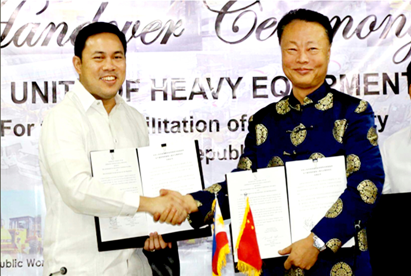 10月24日,中國援助菲律賓馬拉維重建的47臺重型設備在菲律賓舉行了交接儀式(如下圖),中國駐菲律賓大使趙鑒華代表中國政府出席儀式并簽署了援助交接證書。