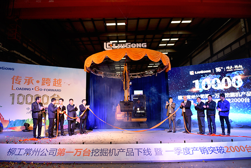 3月31日,柳工常州公司第10000臺(tái)挖掘機(jī)產(chǎn)品下線(xiàn)暨一季度產(chǎn)銷(xiāo)突破2000臺(tái)活動(dòng)在常州舉行(如下圖)。