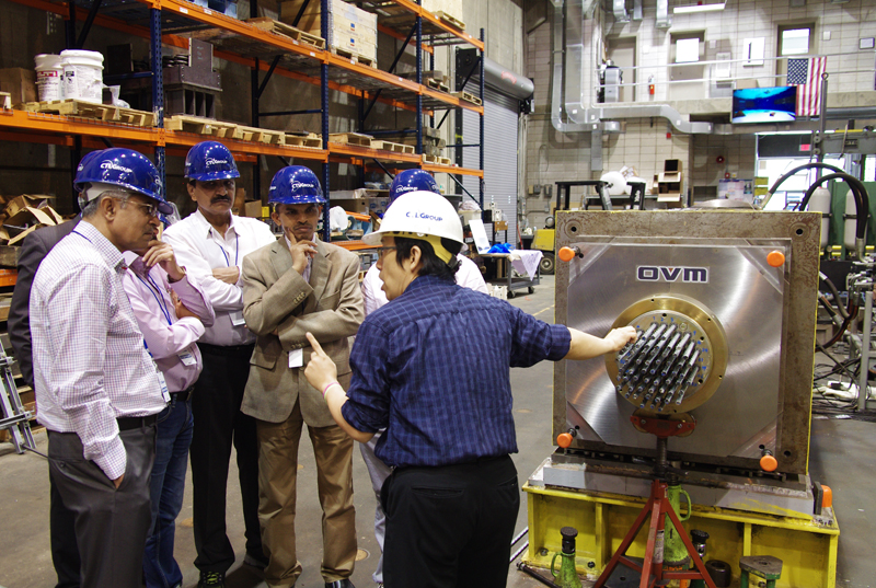圖為在美國CTL結(jié)構(gòu)實驗室,歐維姆公司試驗人員向印度客戶介紹試驗情況。